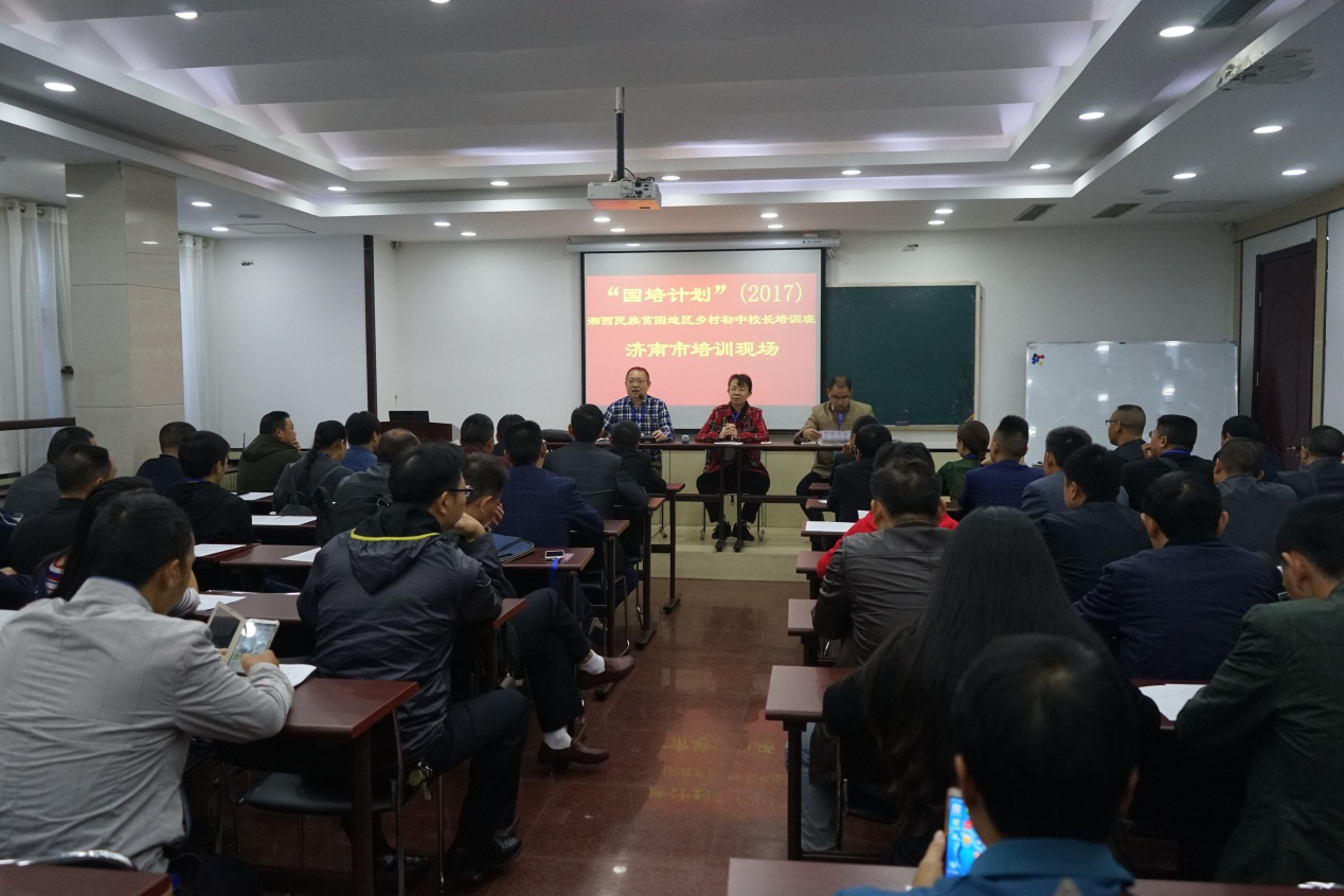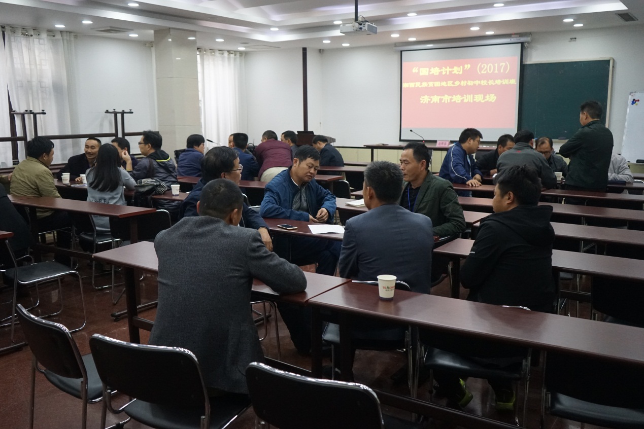 根据“国培计划”(2017)——湘西民族贫困地区乡村初中校长培训(E401)项目的实施方案,培训第二阶段(异地影子实习培训)安排在山东省济南市进行。经过ok1122诸侯快讯和湘西州教体局的前期联系和充分准备,在山东省济南市教育局的大力支持下,培训项目第二阶段如期实施。金秋十月,瓜果飘香,秋风送爽,阳光普照。10月11日在济南市教师之家宾馆会议室,(E401)项目第二阶段的培训拉开了帷幕。上午9:00,济南市高新区社会事业局方奎明局长作了一场“济南市高新区教师管理体制改革”的专题报告,方奎明局长对所管辖的高新区31所中小学的管理体制改革情况作了全面介绍,改革后的用人机制是能上能下,能进能出,自我选择;特别是新体制在绩效上体现奖勤罚懒多劳多得的原则,起到了教师主动要求上课,主动兼职其他工作的积极效应;打破了教师职称资历等的限制,打碎了平均主义大锅饭。专题报告作完之后,留下30分钟互动提问时间,校长学员们一一争先提问,得到了方局长的耐心解答释惑,学员们带着高兴愉悦的心情结束了上午的培训。