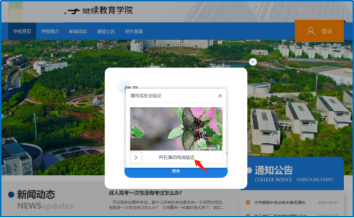 登录后,出现滑块验证,向右滑动模块完成验证。