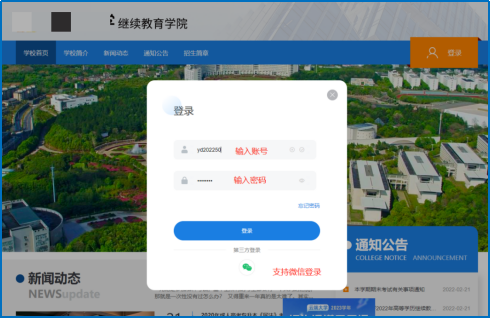 输入学校提供的账号和密码,确认无误后点击登录。