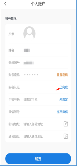 完成认证后,会显示【已完成】,点击【已完成】可查看实名认证的申请详情。