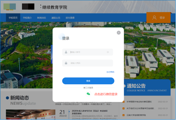 注意:手机端可直接使用APP登录,若用手机打开学校网页,会受手机尺寸影响,无法顺利完成滑块验证。