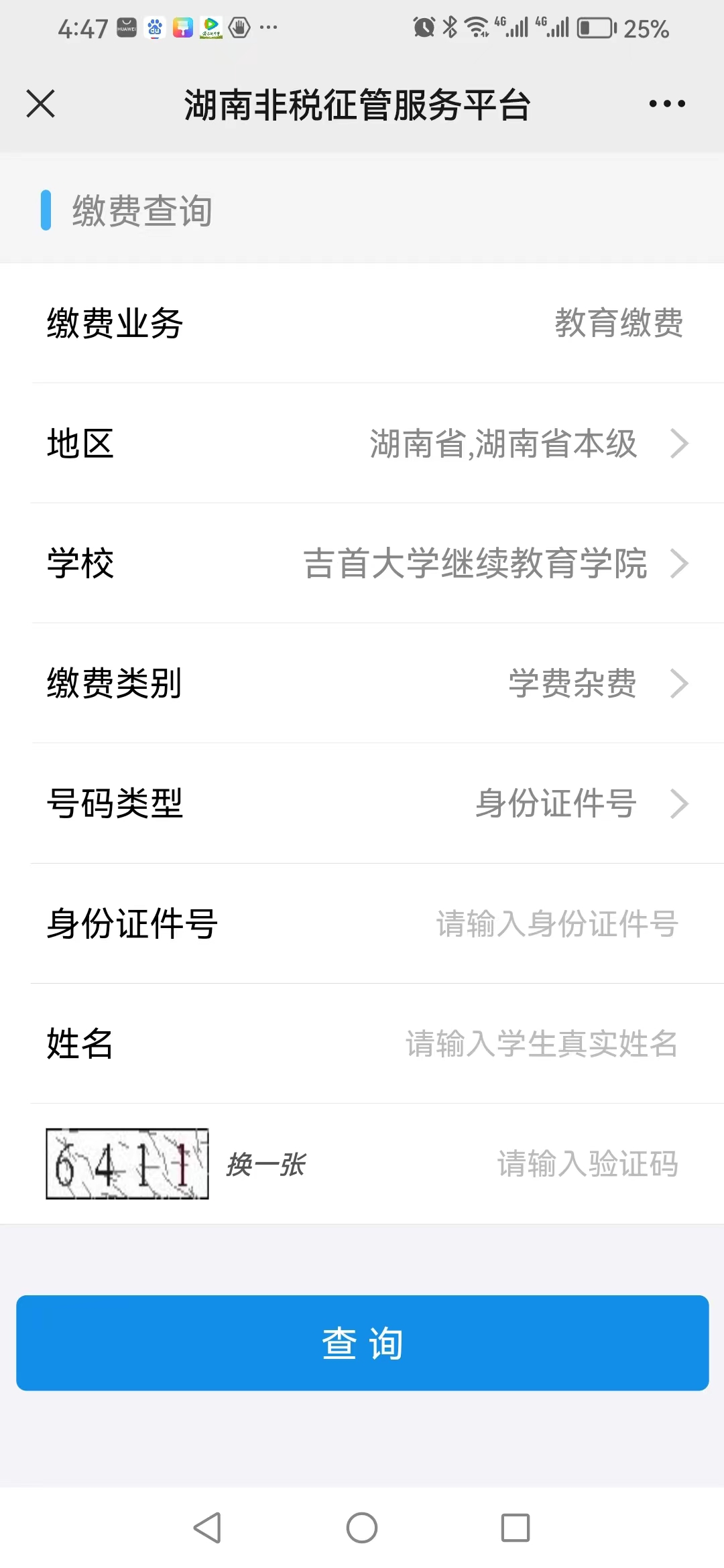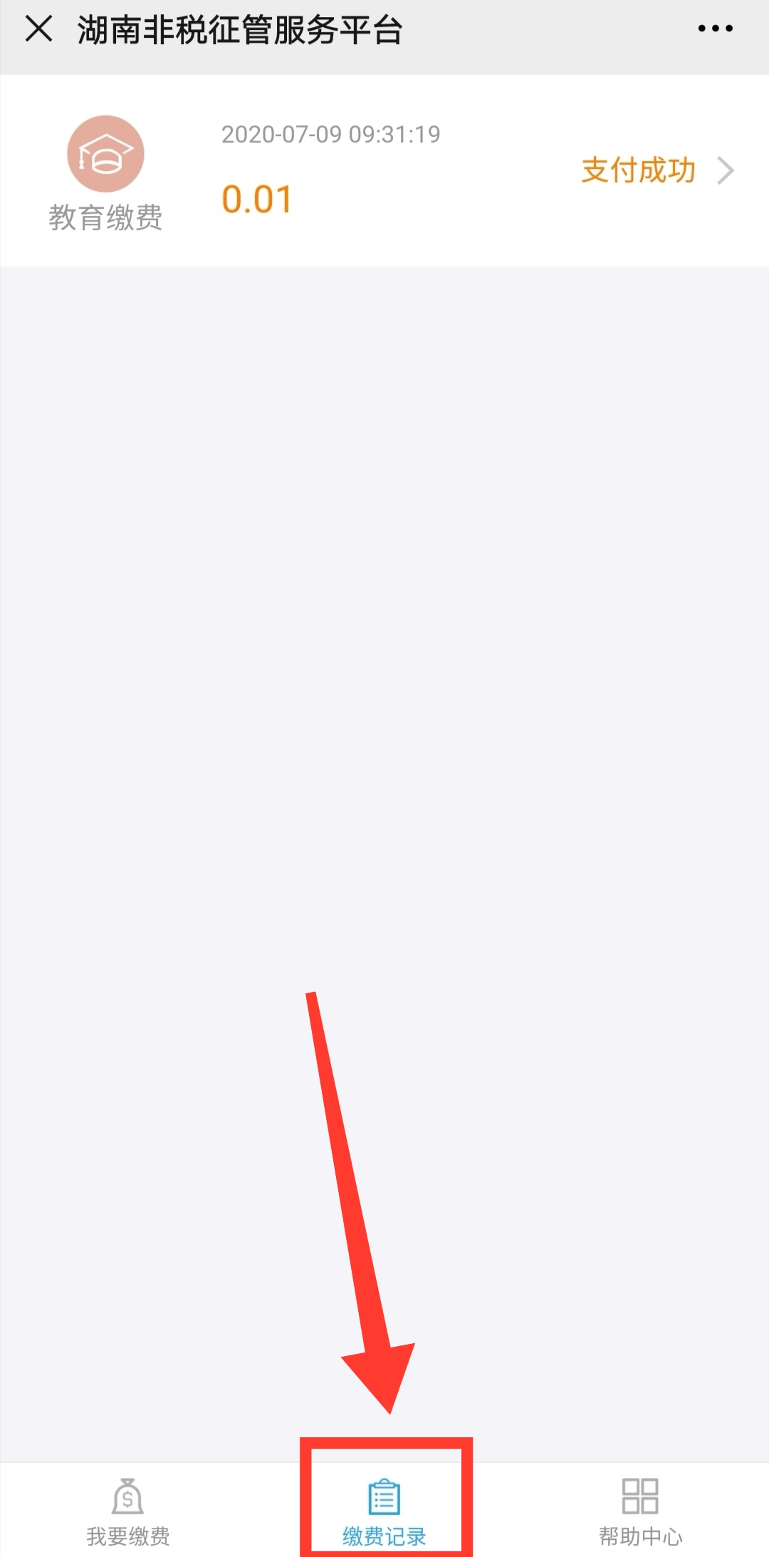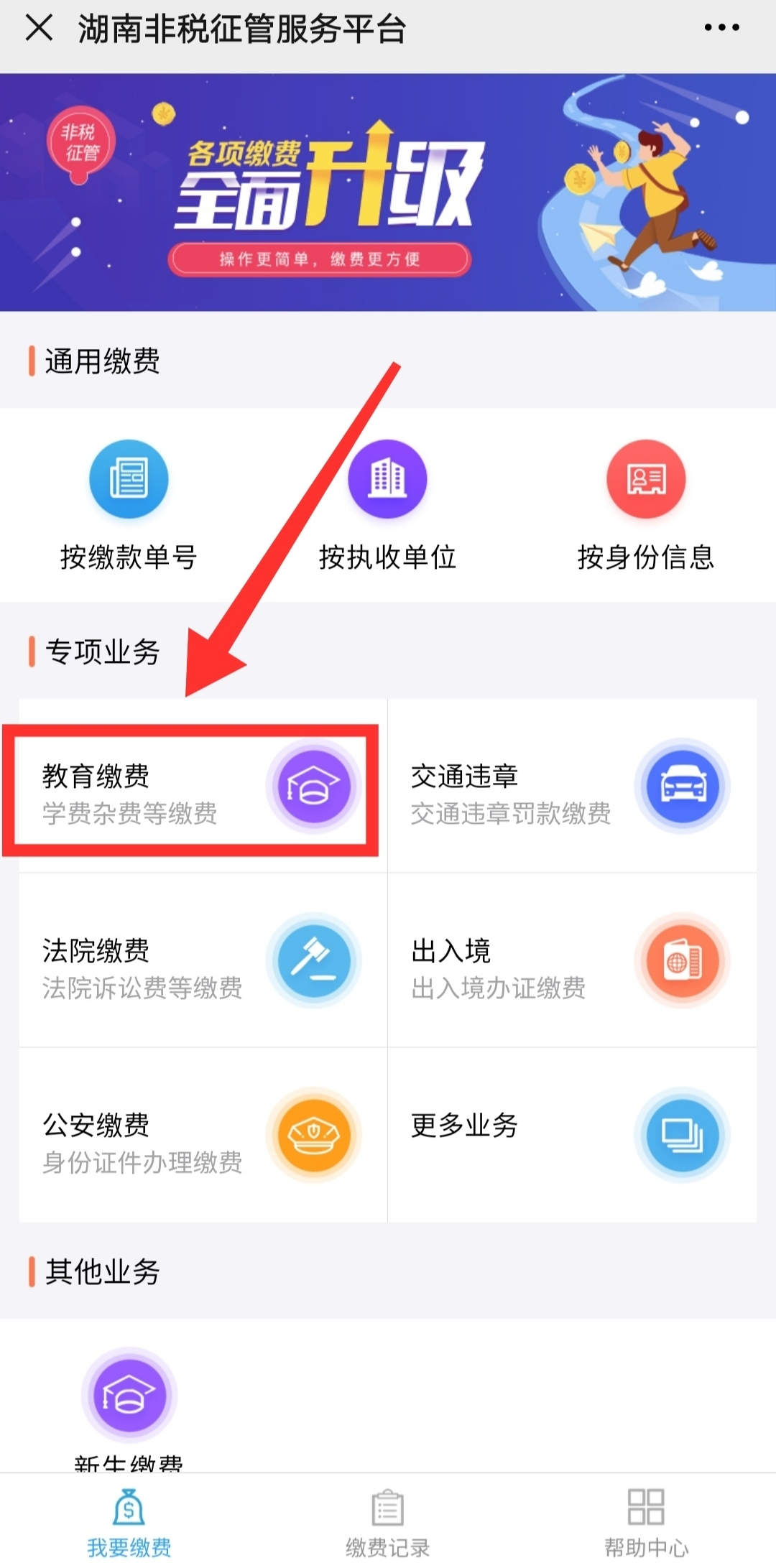 ① 认准“湖南非税”公众号,关注后点击“在线缴费”