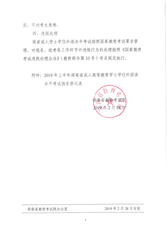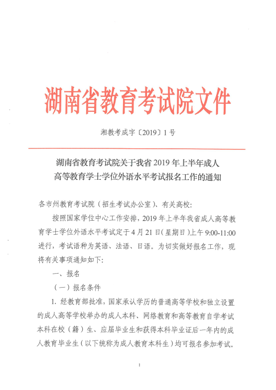 转发湖南省教育考试院《关于我省2019年上半年成人高等教育学士学位外语水平考试报名工作的通知》