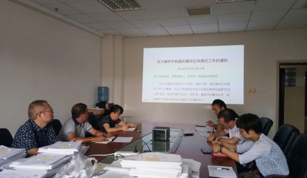 学院副院长曹福明传达学习了《关于做好中秋国庆期间正风肃纪工作的通知》(吉大纪字〔2019〕4号)精神。
